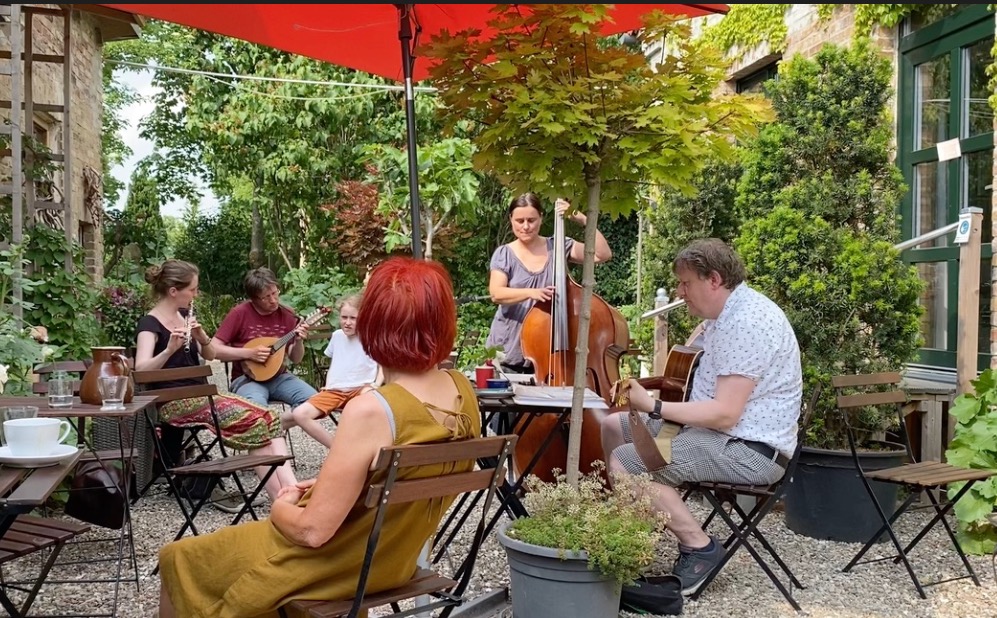 Das Hofcafé, der Kunstraum und der Garten bieten viele lauschige Plätze. Es stehen einige Gitarren, auch Verstärker und Mikrofone und ein Stützflügel zur Verfügung, selbst gemachte, selbst mitgebrachte Instrumente mit natürlich willkommen, wer musiziert bekommt gratis Kaffee und Kuchen. Alle sind herzlich eingeladen. Wir freuen uns über rege Teilnahme und auf ein musikalisches Wochenende - Abends Ende offen.